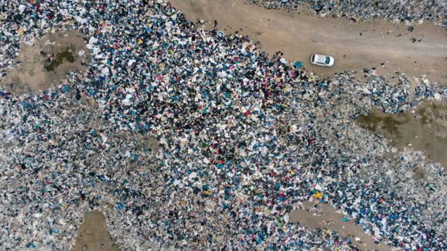 Un muntele de haine nefolosite aruncate în deșert, vizibil din satelit. Cum s-a ajuns la acest dezastru