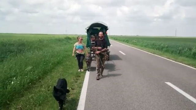 O familie de francezi cu patru copii, care traversează Europa în căruță, a ajuns în România. Destinația lor este Palestina