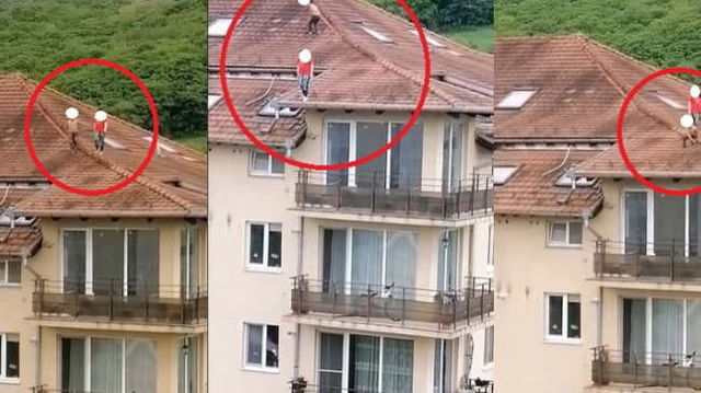 Doi copii de 9 și 12 ani filmați în timp ce se jucau pe acoperișul din țiglă al unui bloc cu patru etaje VIDEO