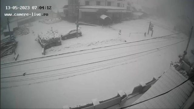 Localitatea din România unde ninge abundent, sâmbătă dimineață. Meteorologii anunță strat consistent de zăpadă la mijlocul lunii mai