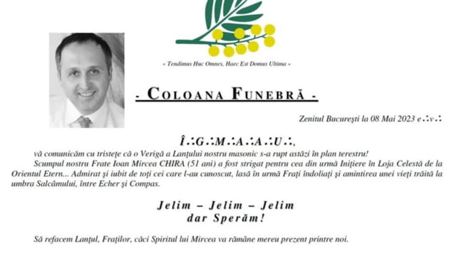 Cum își omagiază masonii un ”frate” decedat subit la 51 de ani: ”O Verigă a Lanțului nostru masonic s-a rupt”