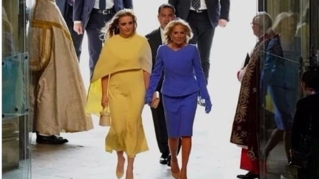 Cine e femeia care a însoțit-o pe Jill Biden la încoronare. S-au îmbrăcat în galben și albastru și au stat lângă soția lui Zelenski VIDEO