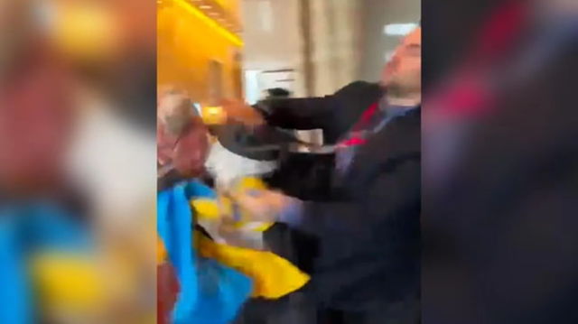 Diplomat rus lovit puternic de un deputat ucrainean căruia îi smulsese drapelul din mână: "Jos labele de pe steagul nostru!" VIDEO