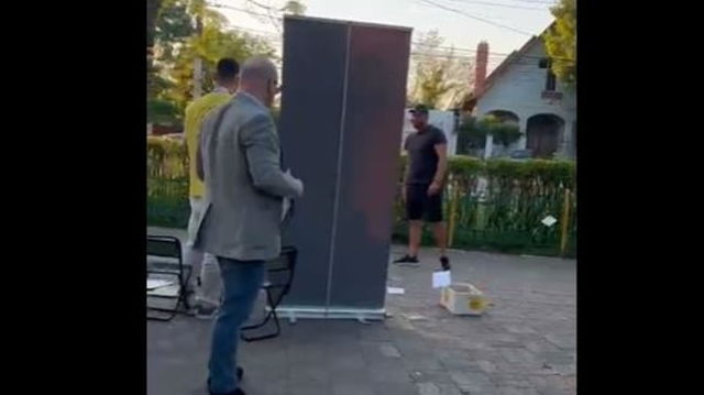 Membri AUR, agresați fizic de un bărbat în faţa Primăriei Voluntari: ”Hai, repede, strângeți tot!” VIDEO