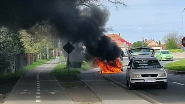 Un șofer din Arad a scăpat de moarte ca prin urechile acului. Mașina în care era a ars complet