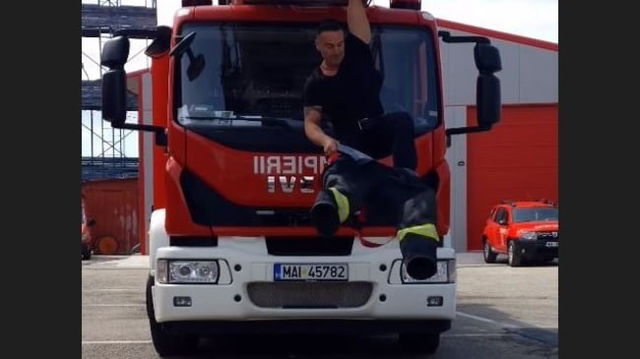 Pompierul din Argeș devenit vedetă după ce a prezentat modul original în care se echipează pentru o intervenție VIDEO