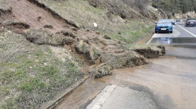 Alunecare de teren pe drumul european 578, în Harghita. Valul de pământ a ajuns până pe carosabil