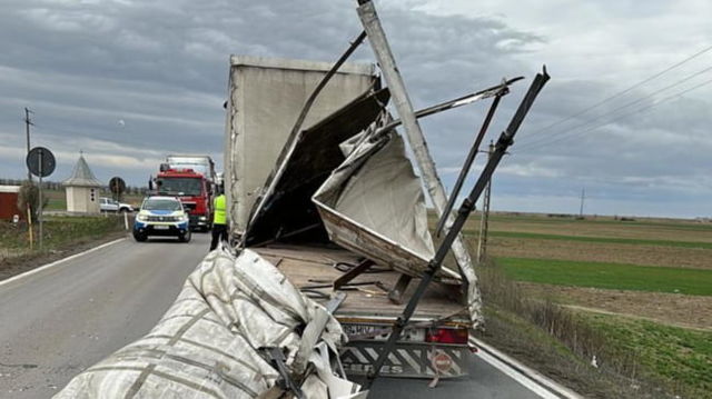 Accident grav în România din cauza vântului. Un bărbat a fost rănit după ce remorca unui camion s-a dezmembrat