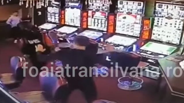 Cu toporul la sala de jocuri. Jaful ratat în mod rușinos al unui atacator pus pe fugă VIDEO