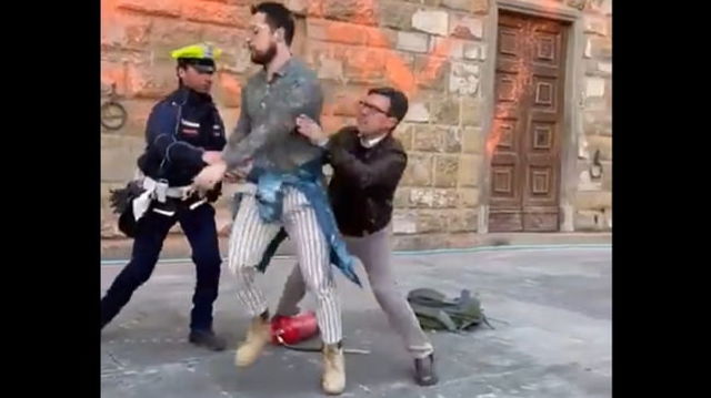 Primarul din Florența a placat un activist care pulveriza vopsea pe faţada faimosului Palazzo Vecchio: "Ce dracu' faci?" VIDEO