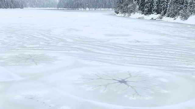 Fenomenul spectaculos apărut pe gheața unui lac din Apuseni: ”Când Dumnezeu se joacă cu natura” FOTO