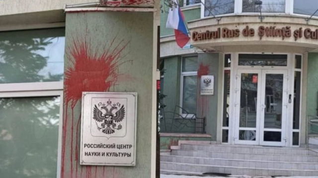 Centrul Rus de Știință și Cultură de la Chișinău a fost mânjit cu vopsea roșie