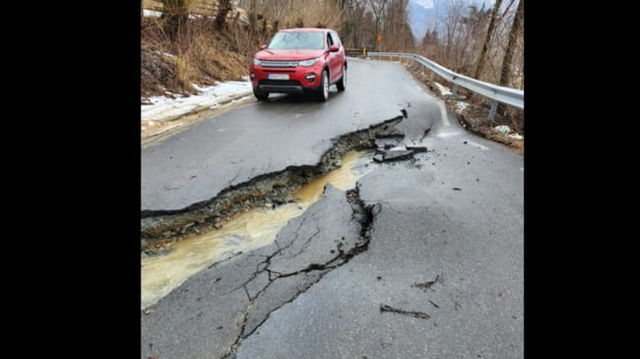 Drum comunal din nordul țării închis traficului rutier după ce s-a surpat. Fusese modernizat de puțin timp cu 2 milioane de euro VIDEO