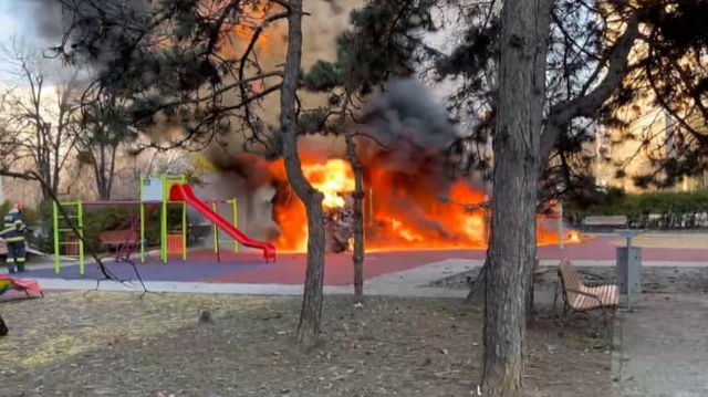 Incendiu puternic într-un parc de joacă din București. Autoritățile încearcă să afle dacă focul a fost provocat intenționat VIDEO
