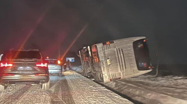 Un autocar în care se aflau 6 persoane s-a răsturnat pe drumul european E58, în Suceava, după ce a derapat