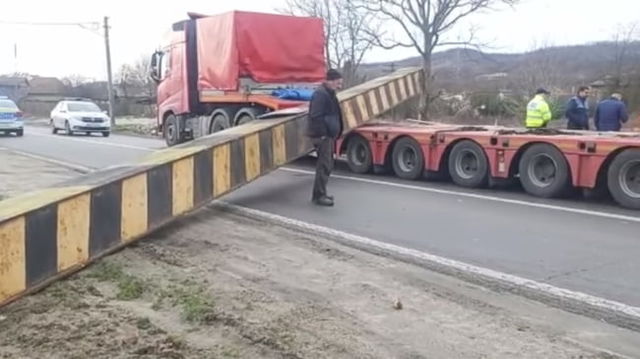 Limitator de viteză pe DN 64, spulberat de un TIR încărcat cu utilaje. Drumul este blocat pe ambele sensuri VIDEO