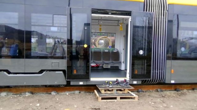 Gestul sfios al unor reșițeni la inaugurarea unui tramvai. Oamenii și-au lăsat încălțările la ușă VIDEO