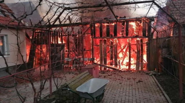 Incendiu pornit de la un aparat lăsat sub tensiune. Trei gospodării sunt afectate și 5 tone de fân au ars