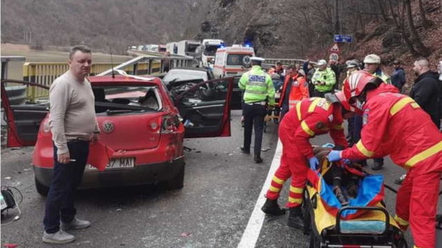 Accident grav în Vâlcea: 4 persoane au fost rănite după ce două autoturisme s-au ciocnit frontal. Trafic îngreunat pe Valea Oltului
