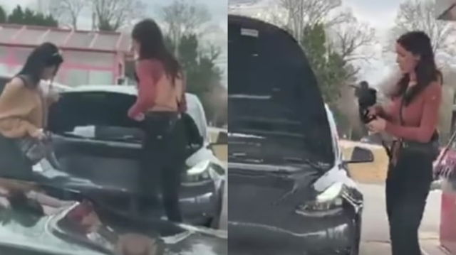 Două femei au încercat să alimenteze o Tesla cu benzină: Căutau un loc în care să bage pompa și au găsit rezervorul pentru lichidul de parbriz VIDEO