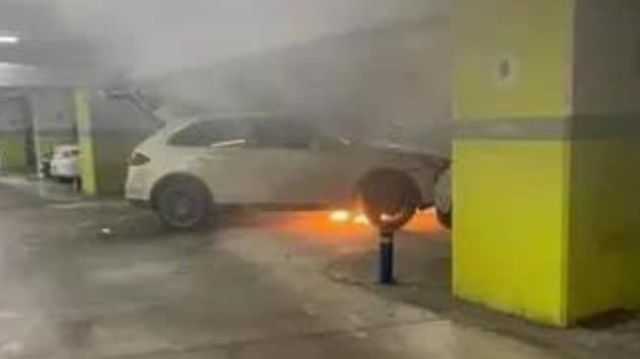 Incident în parcarea subterană a unui mall din București. O mașină a luat foc VIDEO