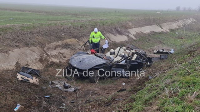 Accident teribil în Constanța. Trei bărbați găsiți morți într-un BMW răsturnat în șanț