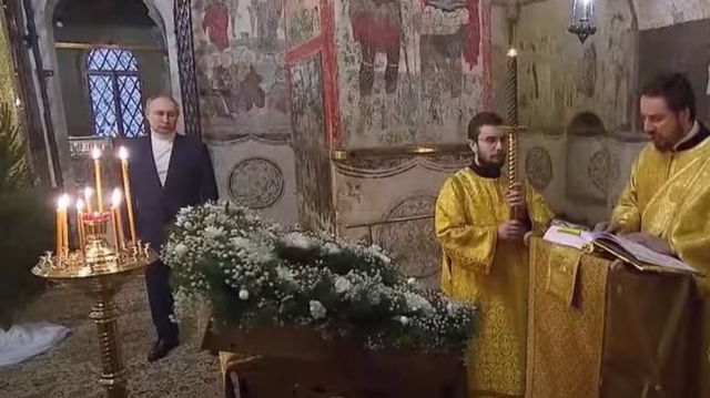 Putin ia parte singur la slujba din Ajunul Crăciunului oficiată într-o catedrală din Kremlin VIDEO
