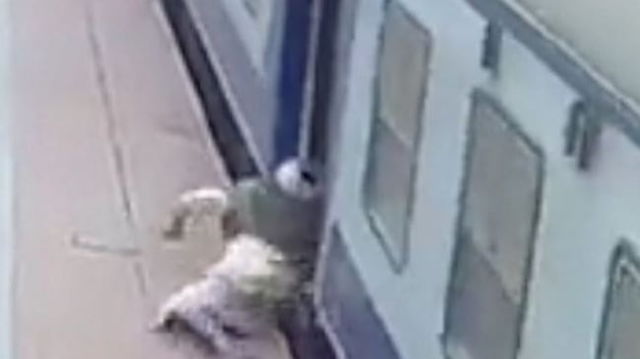 Bărbat aproape strivit de un tren în mișcare, salvat în ultimul moment VIDEO
