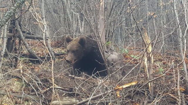 Salvare dramatică a unui urs prins într-un laţ, pe marginea unui drum judeţean VIDEO