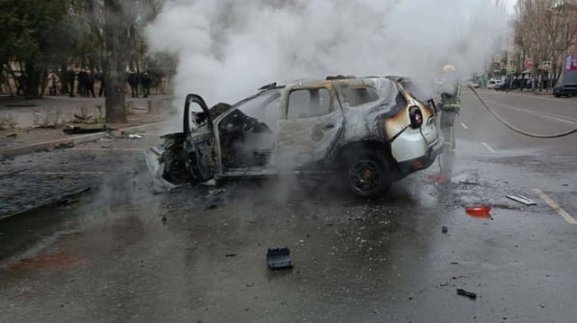 Mașină aruncată în aer în centrul orașului Melitopol. Doi ofițeri FSB au fost grav răniți VIDEO