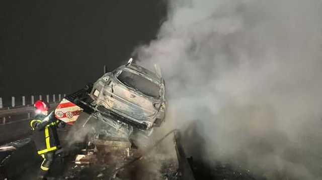 Un camion care transporta mașini a luat foc în mers. Opt autoturisme s-au făcut scrum