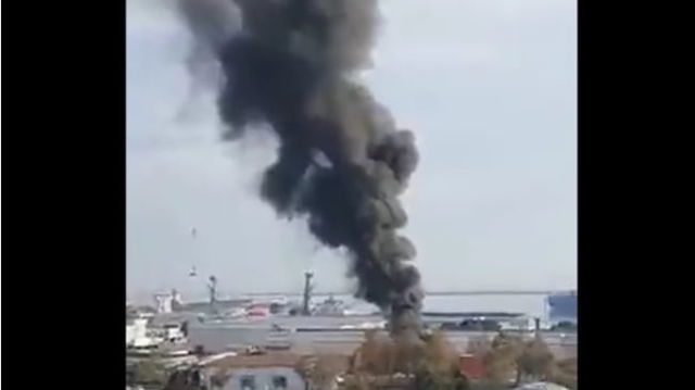 Explozie într-un port de la Marea Neagră. Pompierii au descoperit că un rezervor de combustibil s-a supraîncălzit VIDEO
