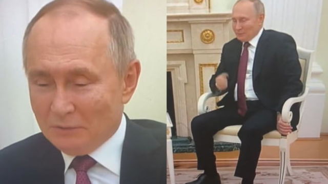 Cea mai recentă apariție publică a lui Putin. Liderul de la Kremlin este livid și "se ancorează" puternic de scaun cu mâna stângă VIDEO