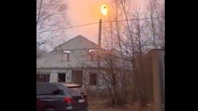 Rachetă rusească distrusă deasupra caselor într-un oraș din Ucraina. Un grup însemnat de oameni asistă la explozie VIDEO