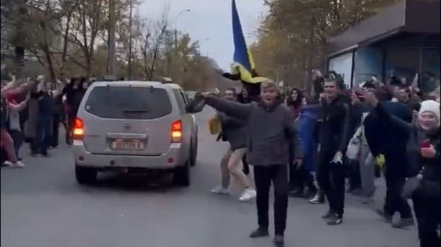 Marea bucurie a ucrainenilor din Herson la eliberarea orașului. Oamenii au blocat străzile pentru a-i îmbrățișa pe soldați VIDEO