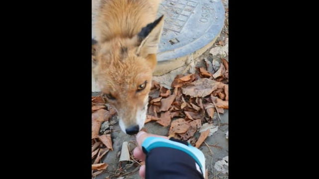 O vulpe flămândă filmată în timp ce mănâncă ciocolată din mâna unui preot. ”Deci nu pot să cred, uite-o cum vine lângă mine” VIDEO