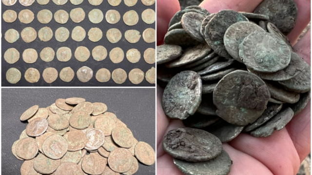 Tezaur format din 60 de monede romane vechi de aproape 2000 de ani, descoperit pe un teren agricol din Alba FOTO