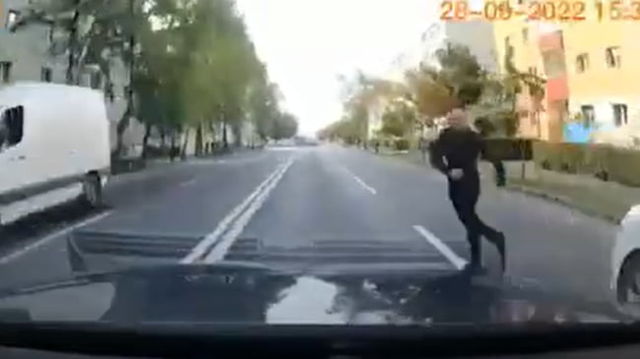 Momentul în care un tânăr s-a aruncat intenționat în fața unei mașini, surprins de camera de bord. Cascadoria, pare a fi o metodă de a câștiga bani VIDEO