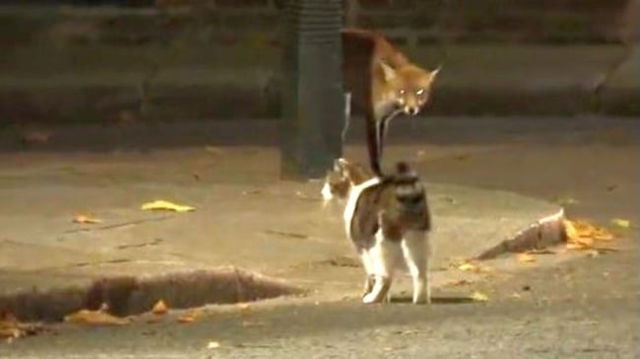 Motanul Larry și vulpea, urmărire ”ca-n filme” pe strada reședinței premierului Marii Britanii VIDEO