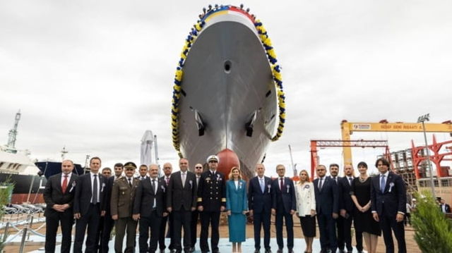Super corvetă antisubmarină construită în Turcia pentru Ucraina. Nava a fost lansată de prima doamnă Olena Zelenska