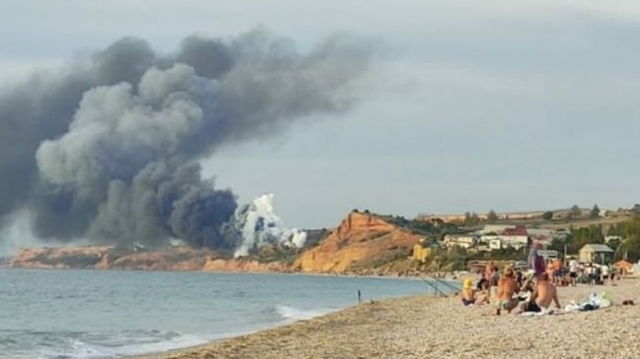Explozii și fum gros pe cea mai importantă bază militară a Moscovei în Crimeea. Rușii susțin că un avion ar fi ieșit de pe pistă. Versiunea ucrainenilor VIDEO