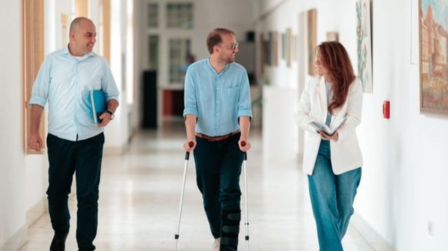 Primarul Timișoarei, Dominic Fritz, în cârje la serviciu. „După un mic accident de…pieton”
