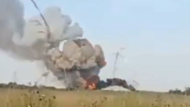 Momentul în care un camion rusesc încărcat cu 200 de dispozitive explozive nimerește o mină VIDEO