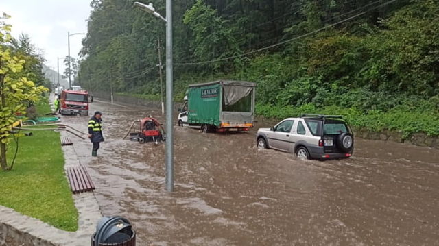 Inundații pe Valea Oltului, după ce a fost anunțat cod roșu de ploi torențiale. Traficul a fost deviat VIDEO