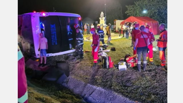 Un autocar cu părinţi şi copii ucraineni s-a răsturnat în Vrancea. La locul accidentului a fost amplasat un cort de prim ajutor UPDATE