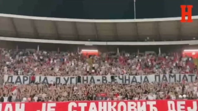 Suporterii echipei Steaua Roșie Belgrad au afișat un banner în memoria Dariei Dughina. Cine este sponsorul mare al formației sârbe VIDEO