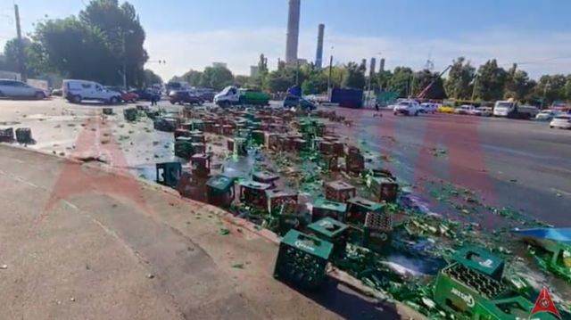 Cum „a pierdut” un TIR plin cu lăzi de bere toată marfa pe stradă VIDEO