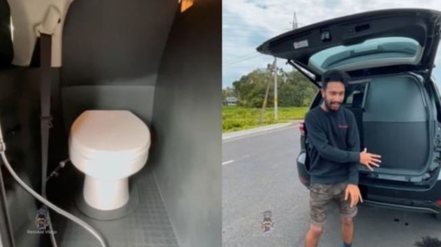 Șoferul care a instalat o toaletă cu vid funcțională în mașină: are rezervor special pentru transportul apei și nu se varsă în nicio situație VIDEO