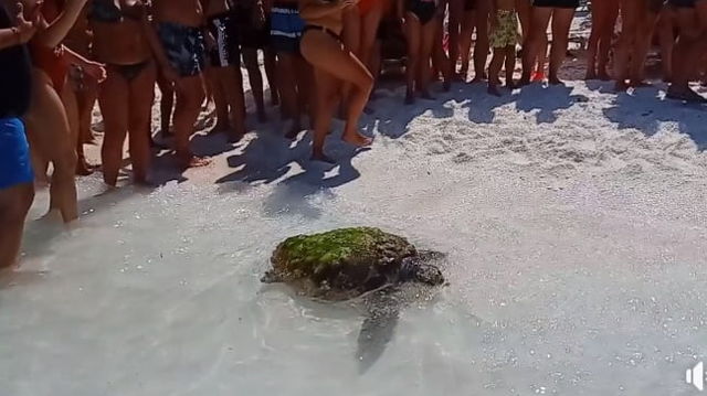 O plajă plină de români din Grecia s-a adunat să privească o țestoasă rănită: "Avea capul spart și se tot întorcea la mal"