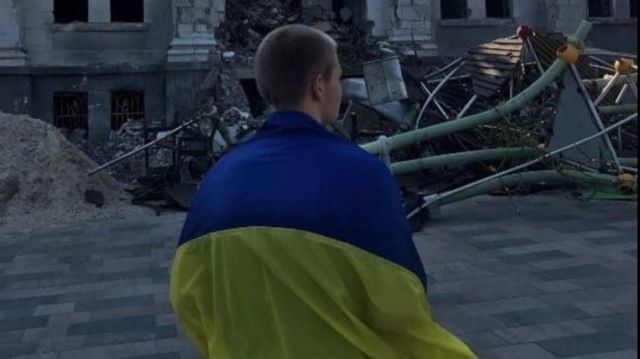 Zelenski, impresionat de tânărul ucrainean care a ieșit înfășurat în drapelul național pe străzile din Mariupolul ocupat de ruși